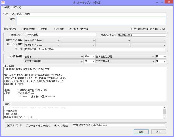 ・メール送信内容はテンプレートとして登録できますので、通常のメール送信に比べて手間はもとより、コンタクト手段としての質の向上も同時に期待できます。