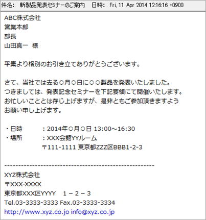 ・対象セグメントの顧客に対して、セミナー案内、新製品案内メールなどの一括送信が可能です。