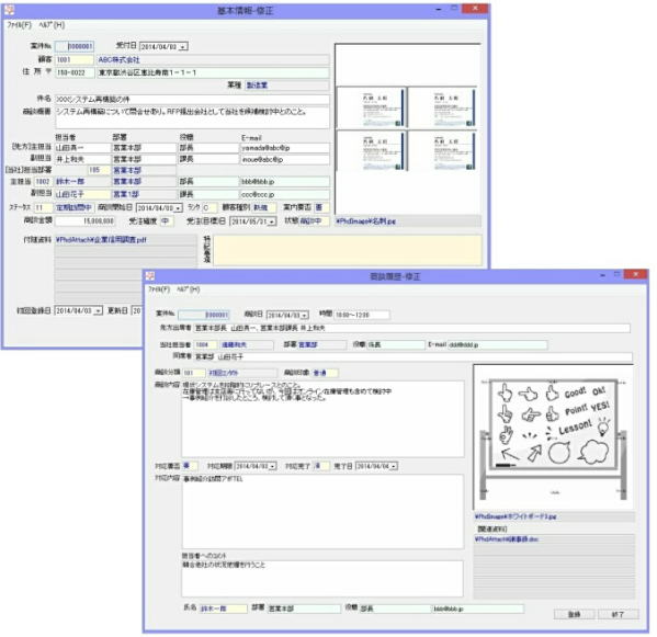 画像の貼り付けや、Excel、Word、PDFなどの関連書類を紐付けて管理できます。